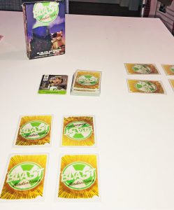 Le jeu n’est pas prévu pour un mode 2 joueurs parce qu’il y a des pouvoirs qui visent 2 joueurs adverses et donc il n’y a pas de sens à jouer avec ces cartes-là. Cependant, nous avons essayé d’enlever ces cartes et le jeu à 2 joueurs reste possible, bien que ce soit beaucoup plus amusant et intéressant d’être au minimum 3 joueurs et de jouer avec l’intégralité des cartes.